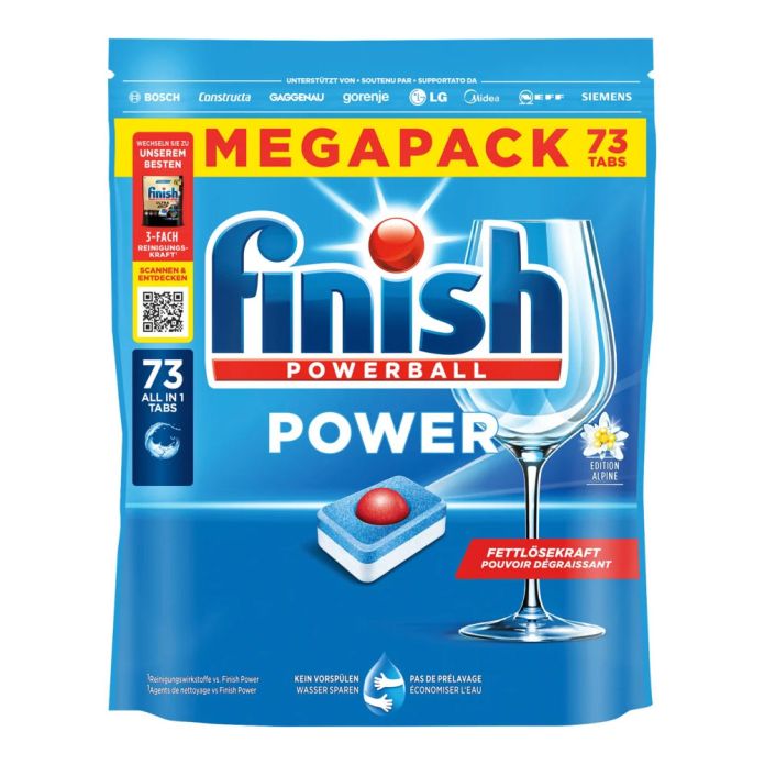 Die Finish Powerball Power All-in-1 Fresh Tabs sorgen für eine gründliche Reinigung und strahlenden Glanz bei jedem Spülgang.